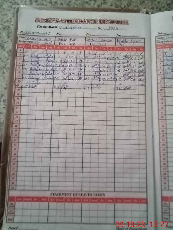 | No. of Students Present - Female | 7 | 0 | 34 | 20 | 30 | 32 | 30 | 29 | 48 | 39 | 50 | 29 | 15 | 363 | ||