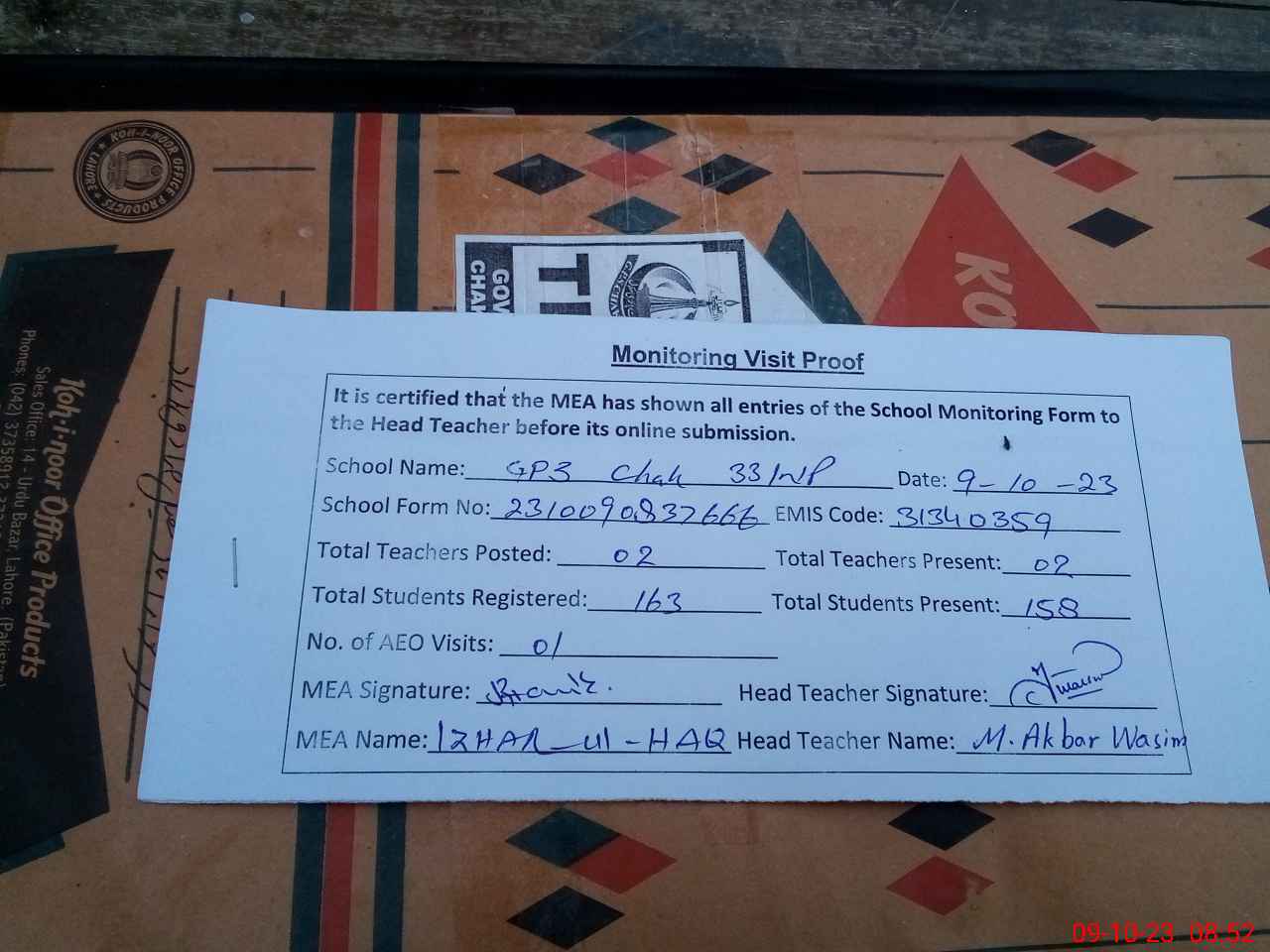 | EMIS Code: 31340359 | Name of School: GPS CHAK NO 33 NP | |||