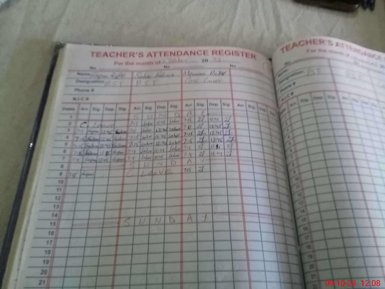 | CNIC | Full Name | Designation | R/C | Absence During Last Calender Month |