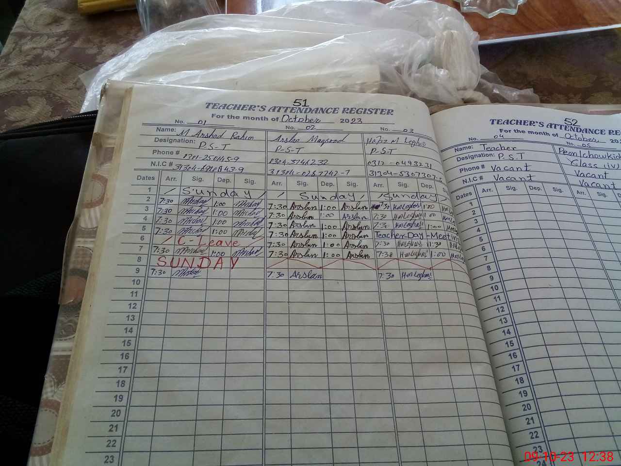 | CNIC | Full Name | Designation | R/C | Absence During Last Calender Month |