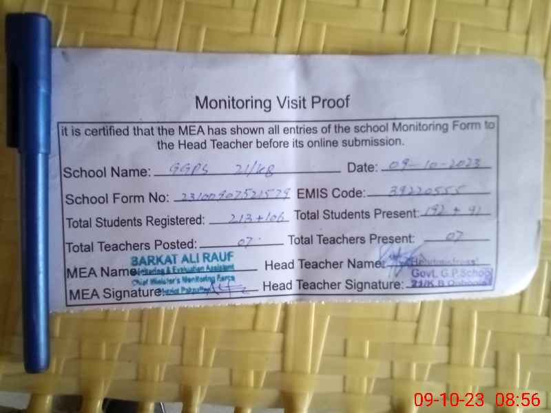 | Certified that this School was Inspected by the Undersigned MEA/DMO Today and the Information Stated Above is as Per Record. | |||||