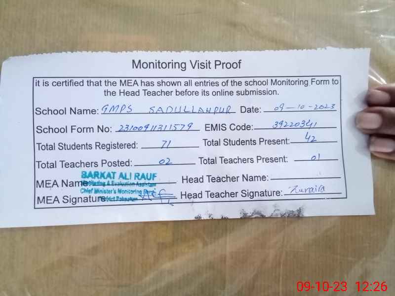 | EMIS Code: 39220341 | Name of School: GMPS SADULLAHPUR | |||