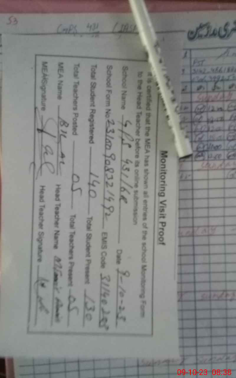 | EMIS Code: 31140203 | Name of School: GPS CHAK NO 431/6-R | |||