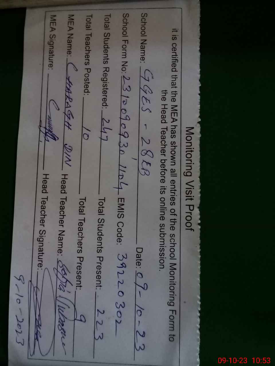 | Certified that this School was Inspected by the Undersigned MEA/DMO Today and the Information Stated Above is as Per Record. | |||||