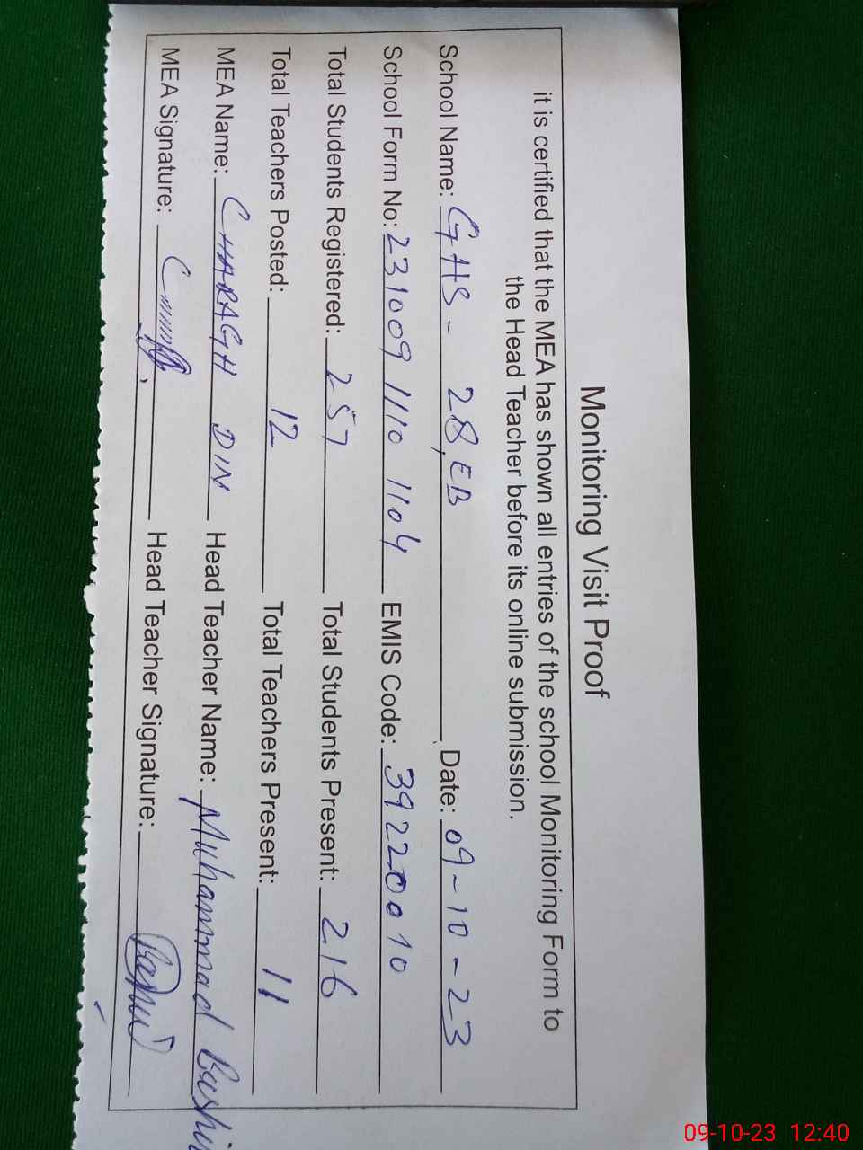 | EMIS Code: 39220010 | Name of School: GHS 28 EB TEH ARIF WALA | |||