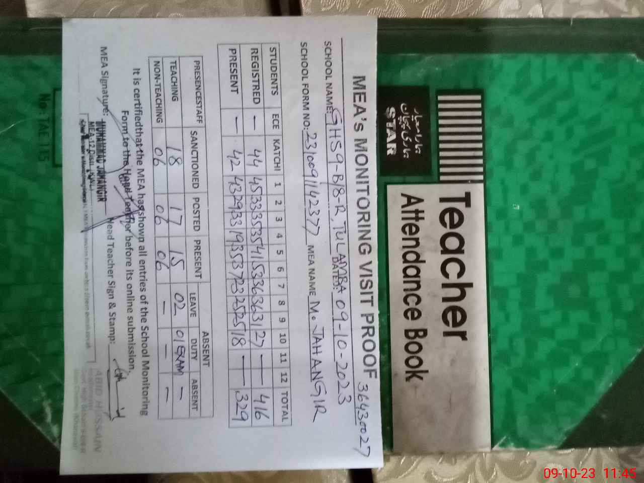 | EMIS Code: 36430027 | Name of School: GHS 9-B/8-R, TULAMBA | |||