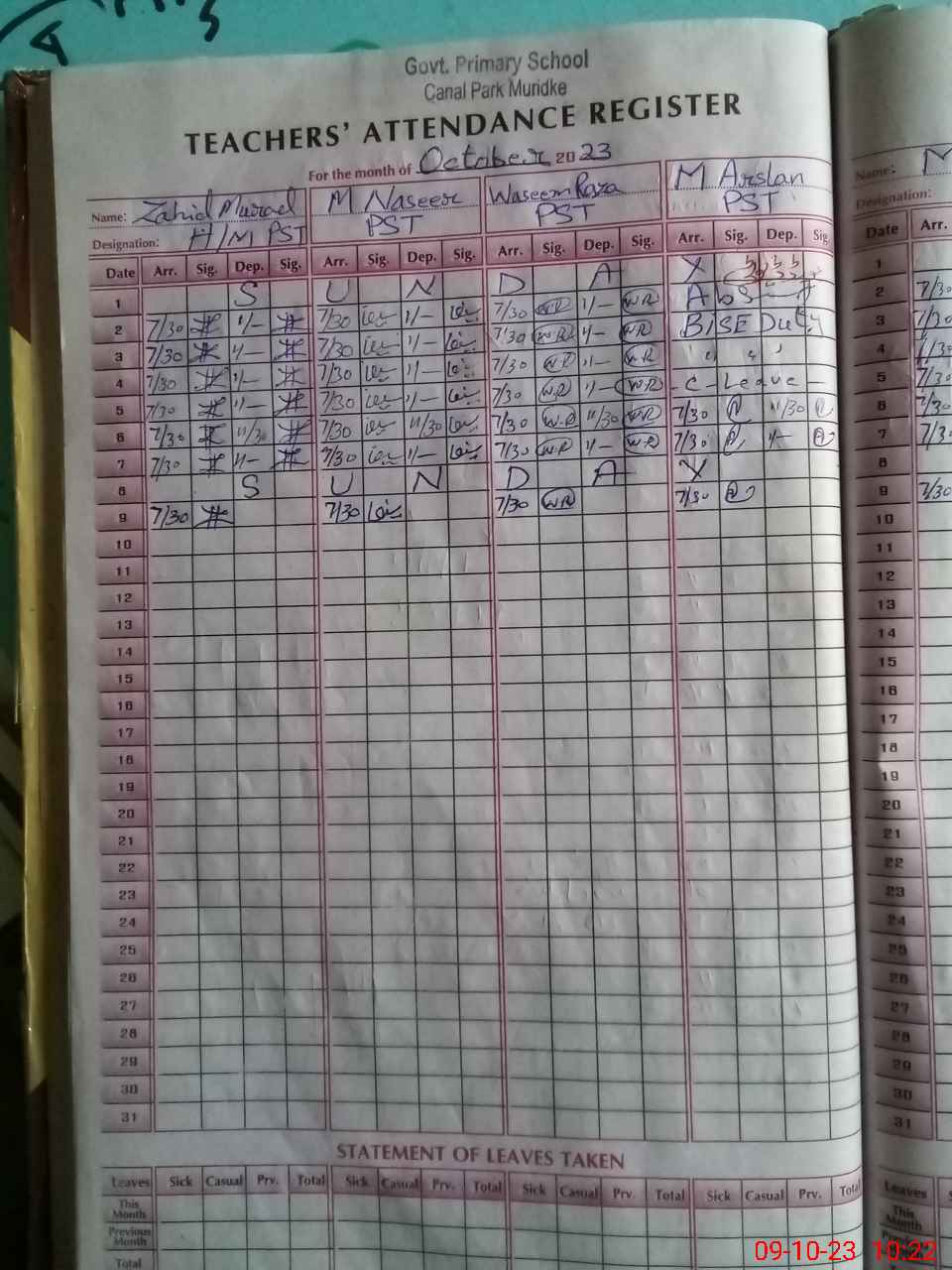 | Leave | Duty | Absent | Maternity | Medical | Ex- Pak |