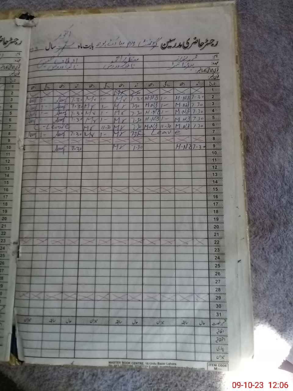 | CNIC | Full Name | Designation | R/C | Absence During Last Calender Month |