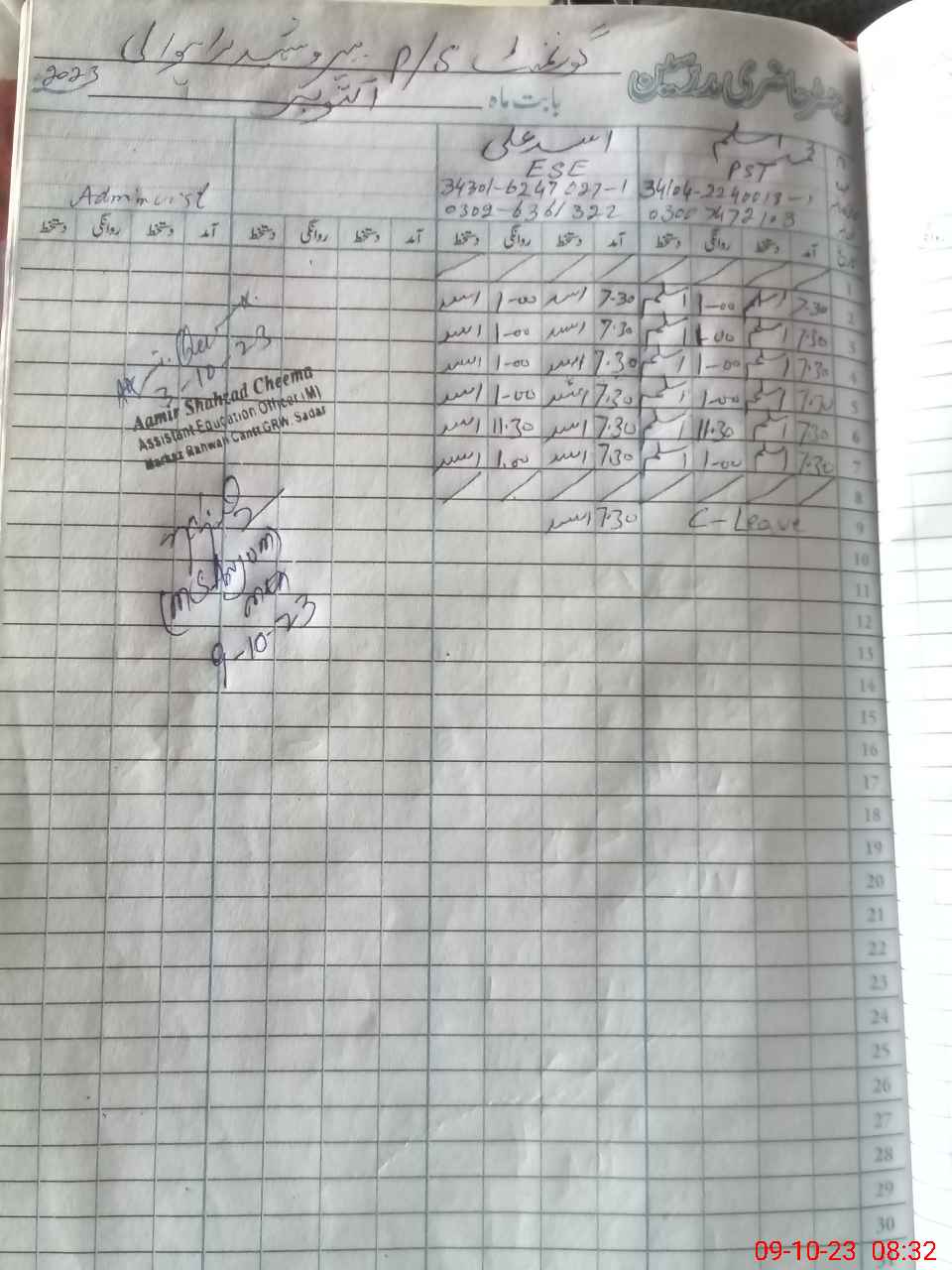 | Name: MU**** AS**** Designation: (School Headmaster's/Headmistress's) PST Phone/Cell Number: 03**** |