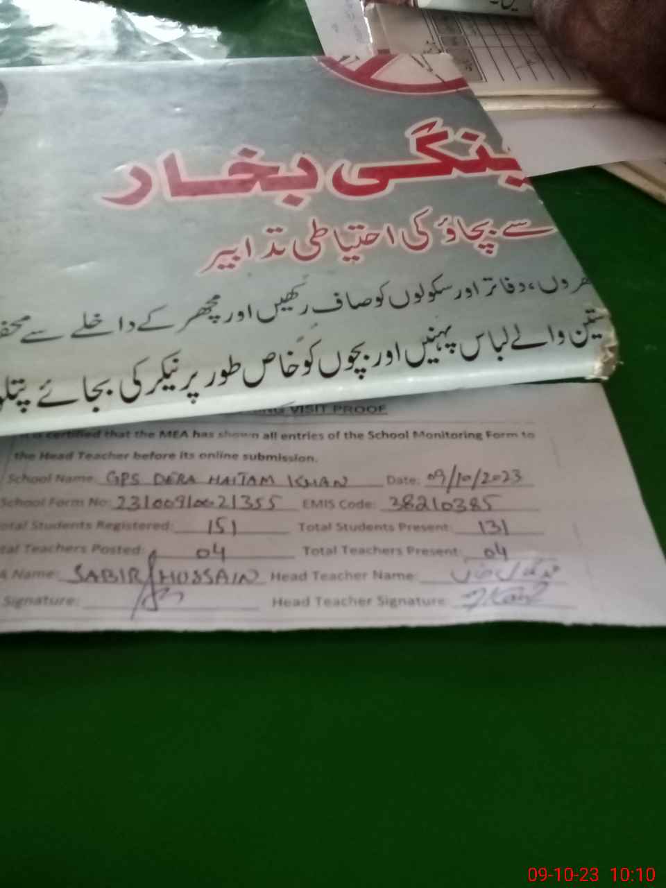 | EMIS Code: 38210385 | Name of School: GPS DERA HAITAM KHAN | |||
