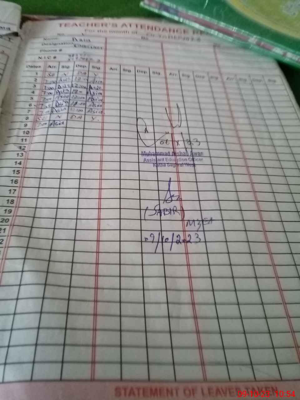 | Name: MU**** Ak**** Designation: (School Headmaster's/Headmistress's) PST Phone/Cell Number: 03**** |