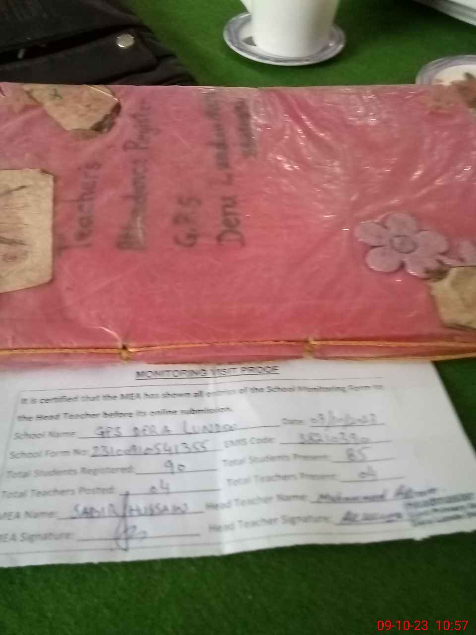 | Attendance Register | Head Teacher | MEA with School | Visit Proof |