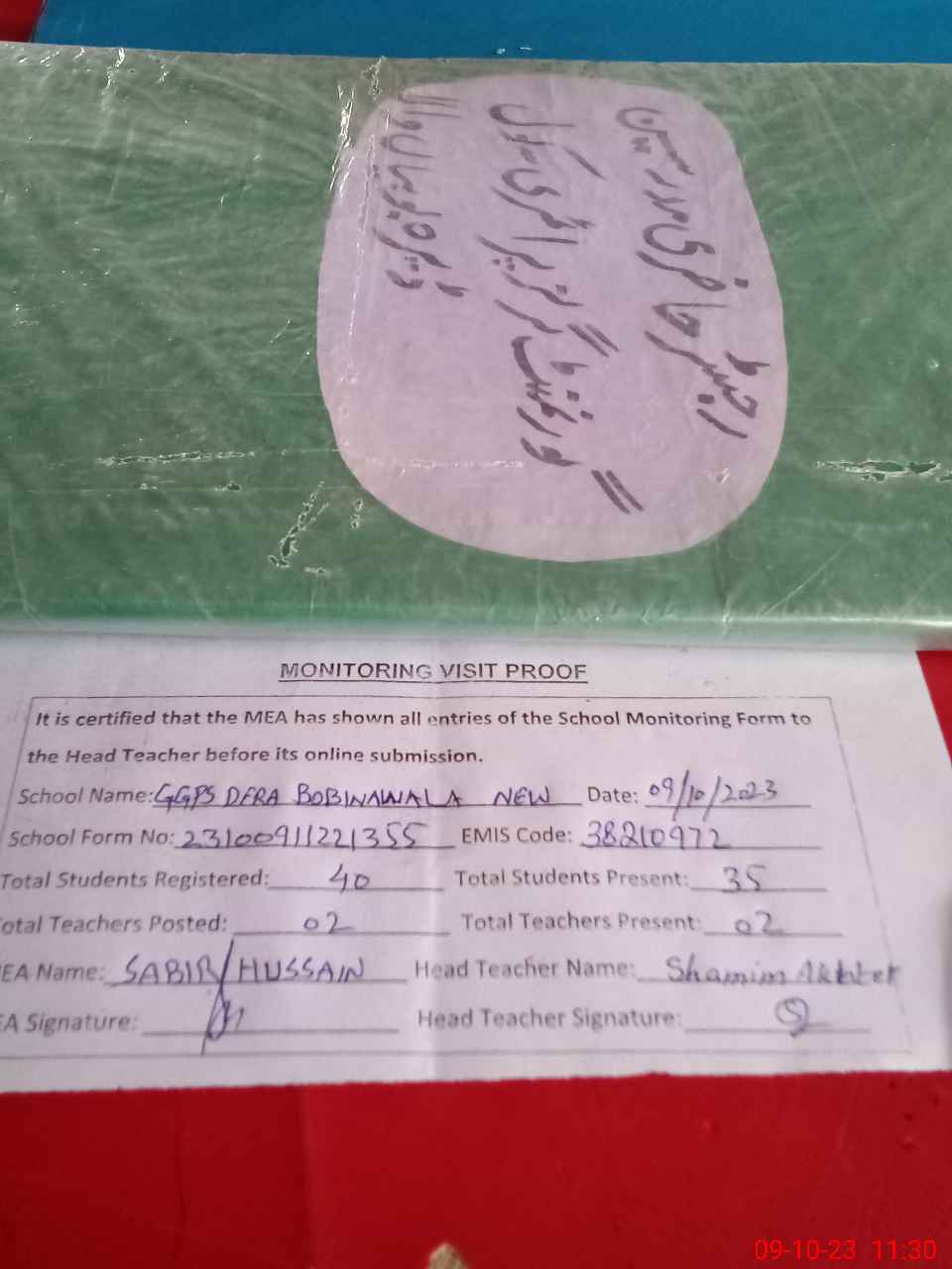 | EMIS Code: 38210972 | Name of School: GGPS BOBINAWALA (NEW) | |||