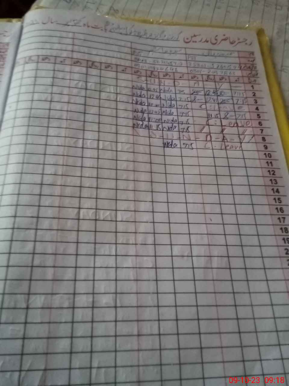 | CNIC | Full Name | Designation | R/C | Absence During Last Calender Month |