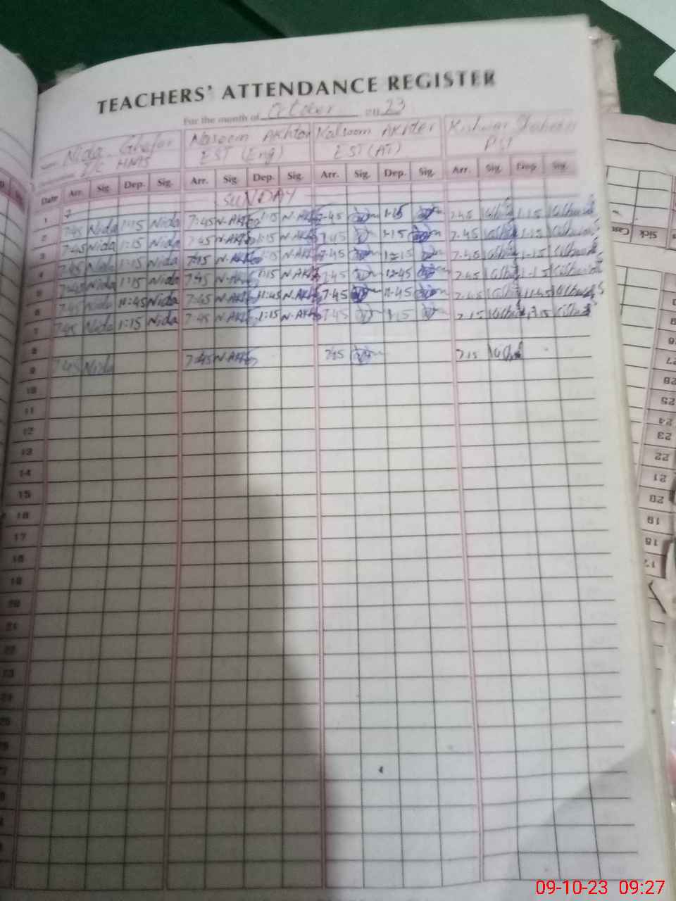 | 33**** | Ki**** Sh**** | 1 | 0 | 0 | 0 | 0 | 0 | 0 | 0 | 0 | 0 | Absent (Un-Authorized) | |