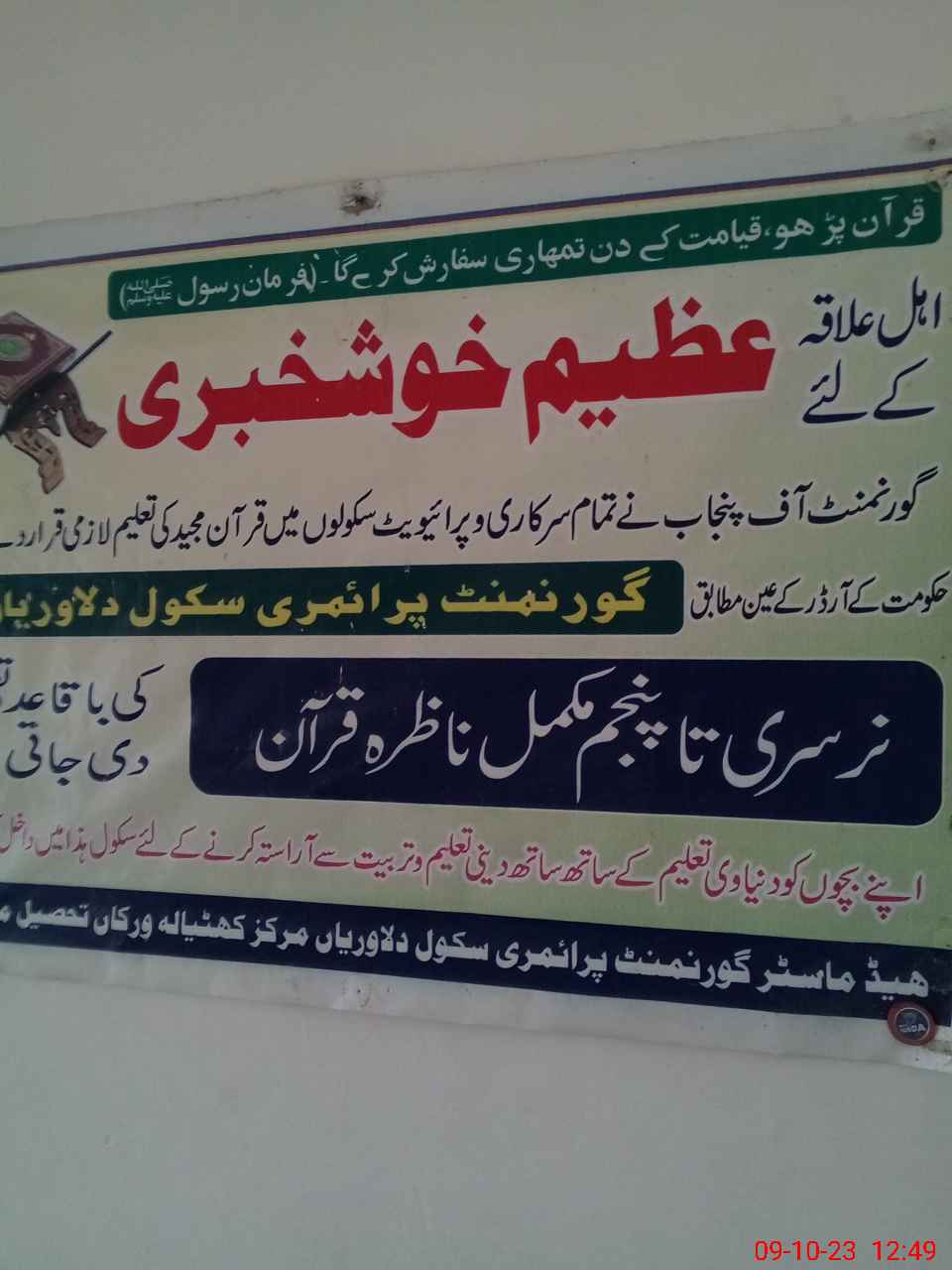| District: SHEIKHUPURA | Tehsil: MURIDKE | Markaz: KHATIALA VIRKAN-MALE | Level: Primary | |