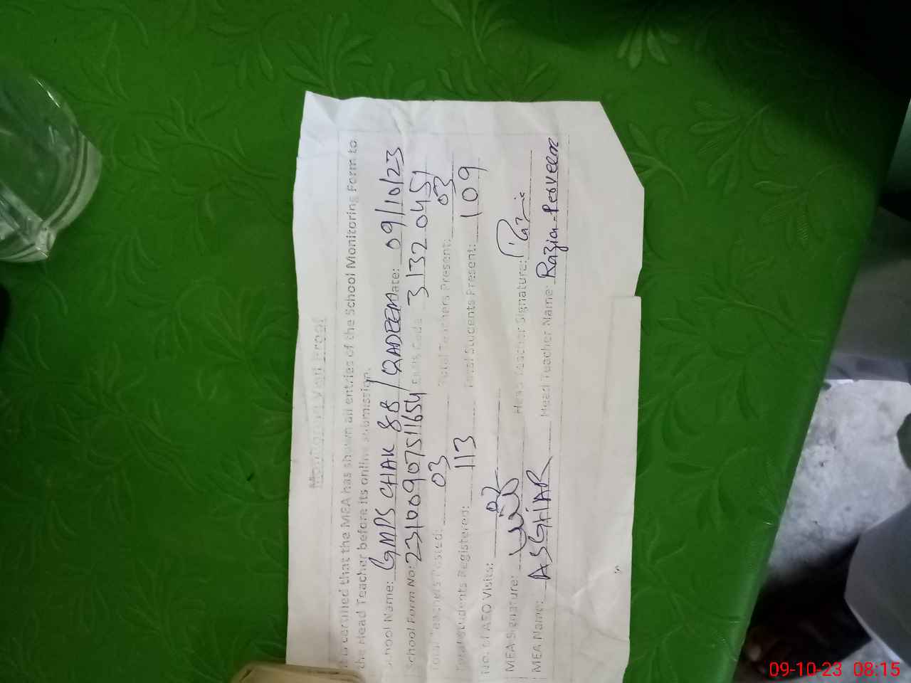 | Monitoring Date: 09-10-2023 | Start Time: 09-10-2023 07:50 AM | End Time: 09-10-2023 08:15 AM | Name of MEA: Kh**** Ah**** | |
