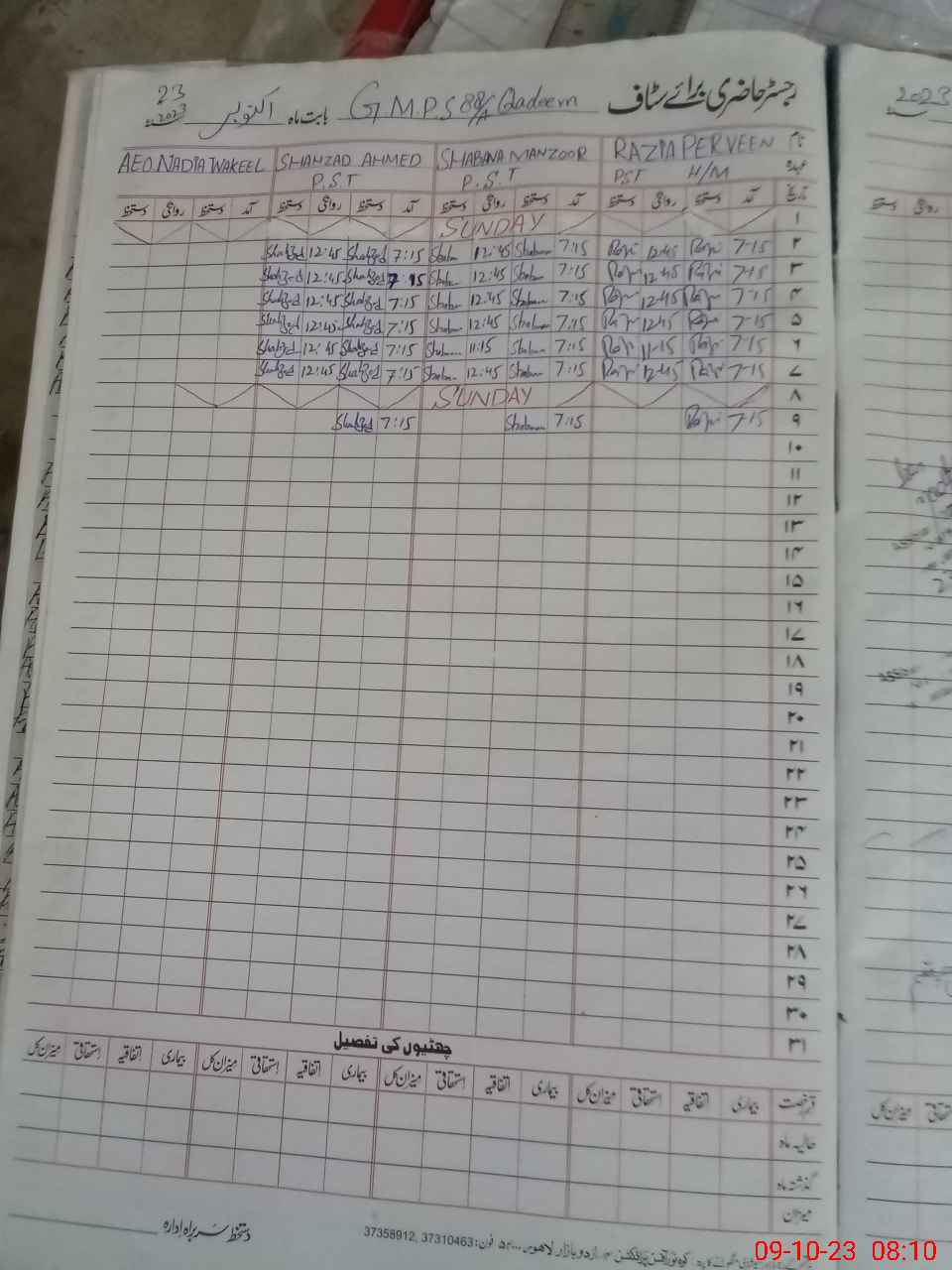| Name: RA**** PA**** Designation: (School Headmaster's/Headmistress's) PST Phone/Cell Number: 03**** |