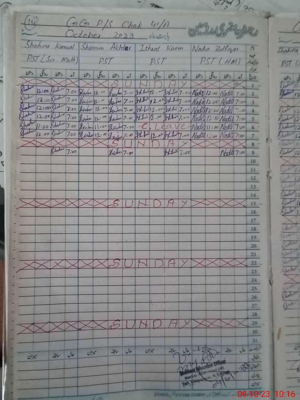 | Name: NA**** ZU**** Designation: (School Headmaster's/Headmistress's) PST Phone/Cell Number: 03**** |