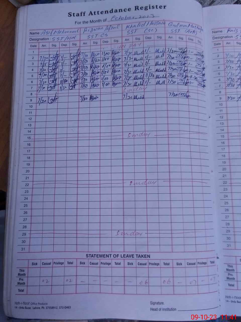 | 31**** | Ab**** Kh**** | 1 | 1 | 0 | 0 | 0 | 0 | 0 | 0 | 0 | 1 | Casual | |