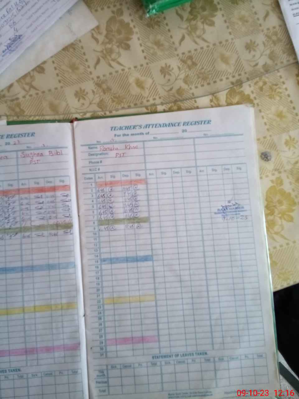 | CNIC | Full Name | Designation | R/C | Absence During Last Calender Month |