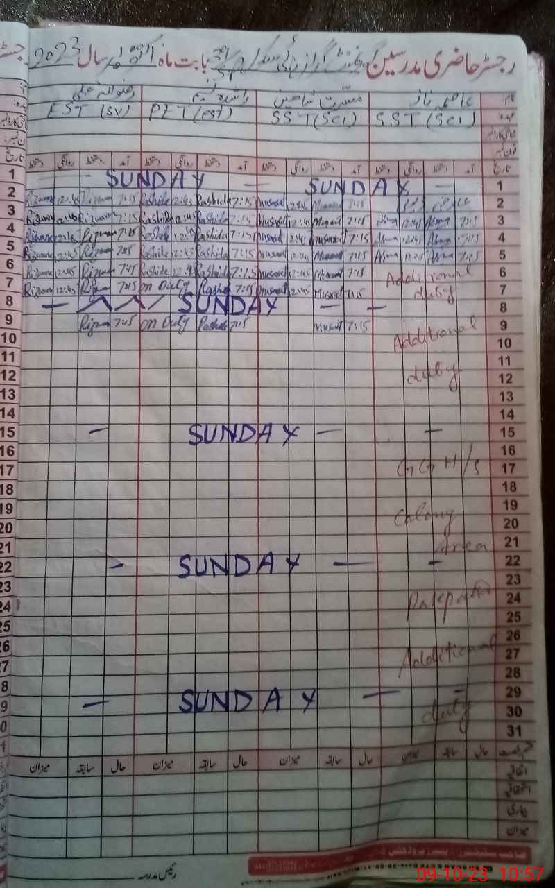 | CNIC | Full Name | Designation | R/C | Absence During Last Calender Month |