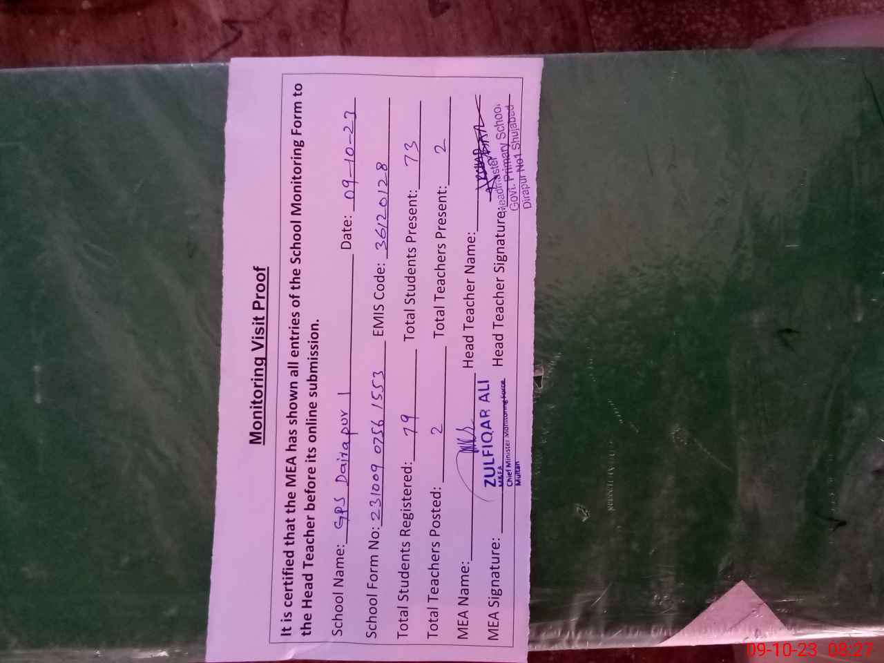 | EMIS Code: 36120128 | Name of School: GPS DAIRA PUR 1 P/O SIKANDARABAD SHUJABAD | |||