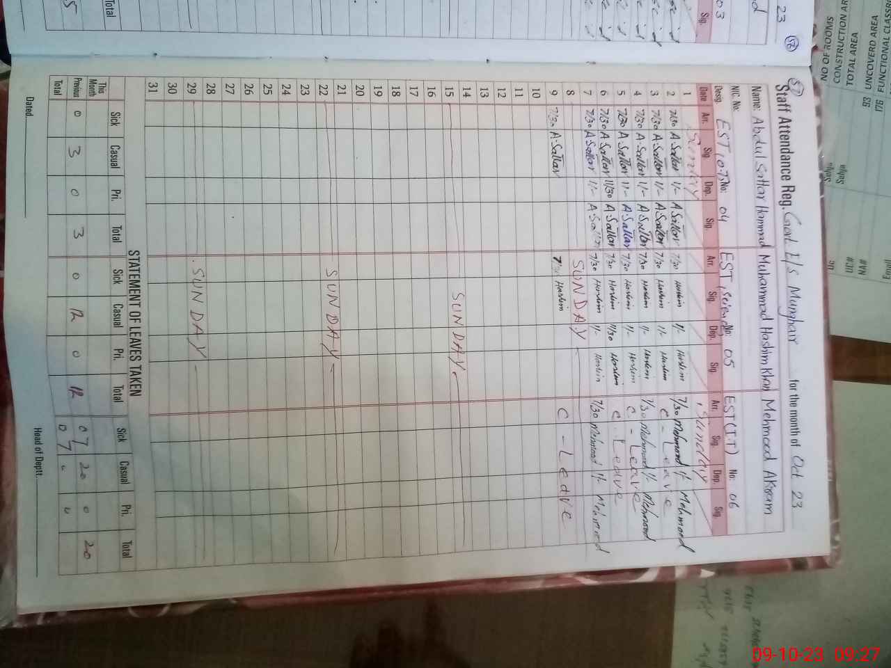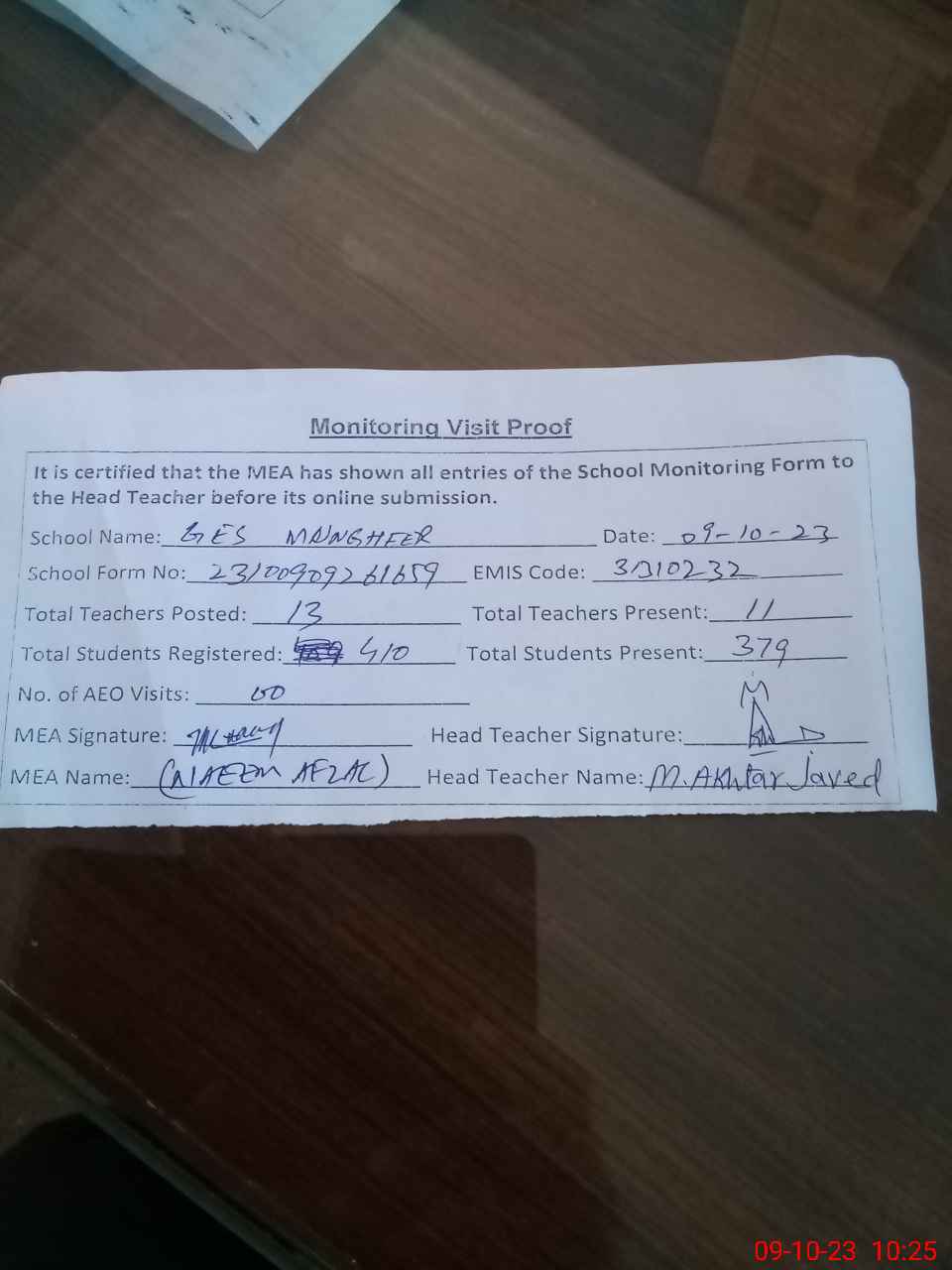 | Monitoring Date: 09-10-2023 | Start Time: 09-10-2023 08:44 AM | End Time: 09-10-2023 10:25 AM | Name of MEA: Na**** Af**** | |