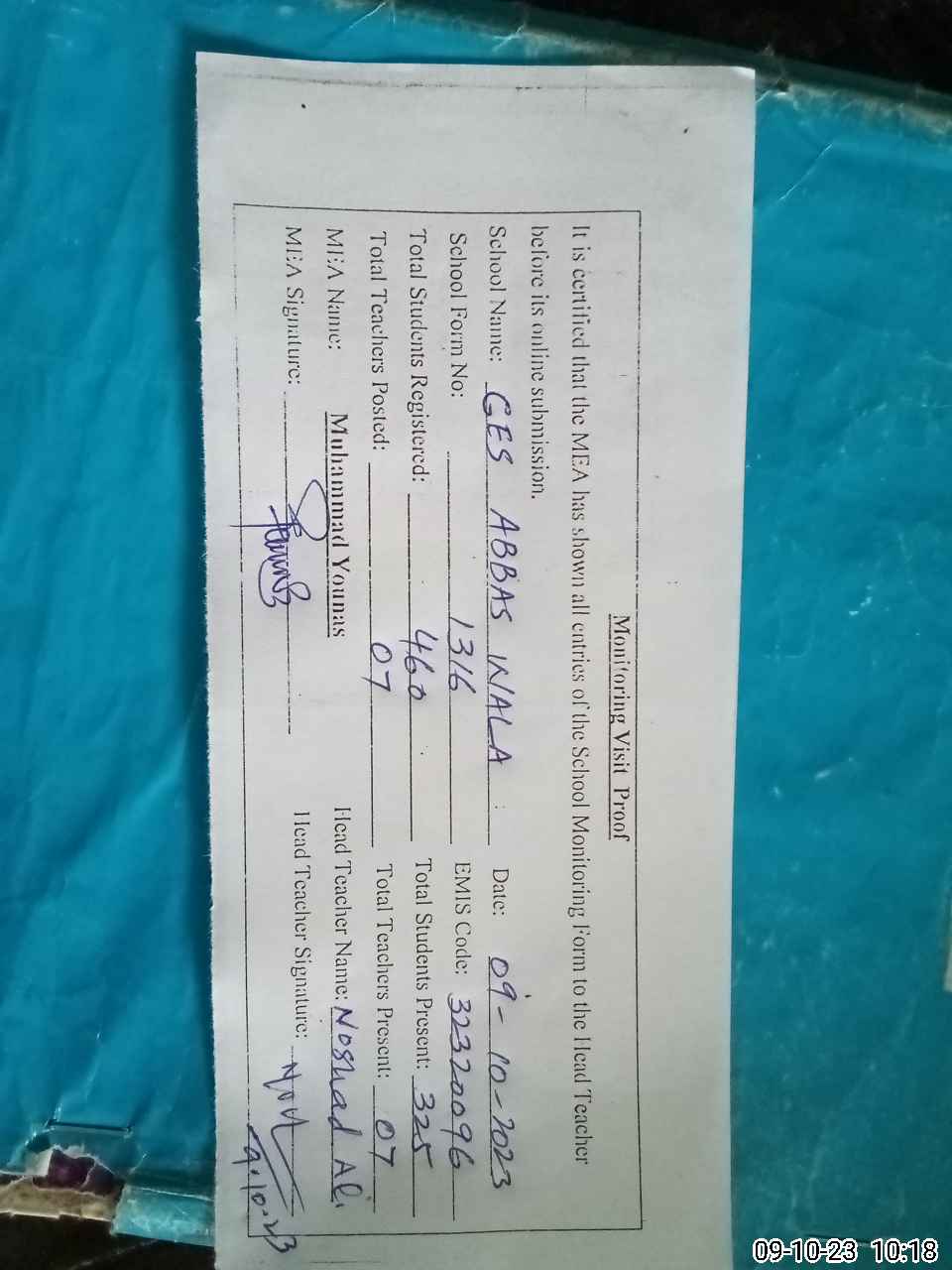 | EMIS Code: 32320096 | Name of School: GES ABBAS WALA | |||