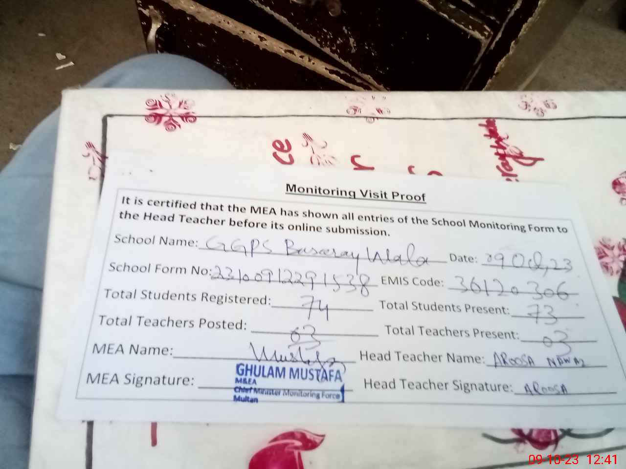 | EMIS Code: 36120306 | Name of School: GGPS BASEERAY WALA SHUJABAD | |||