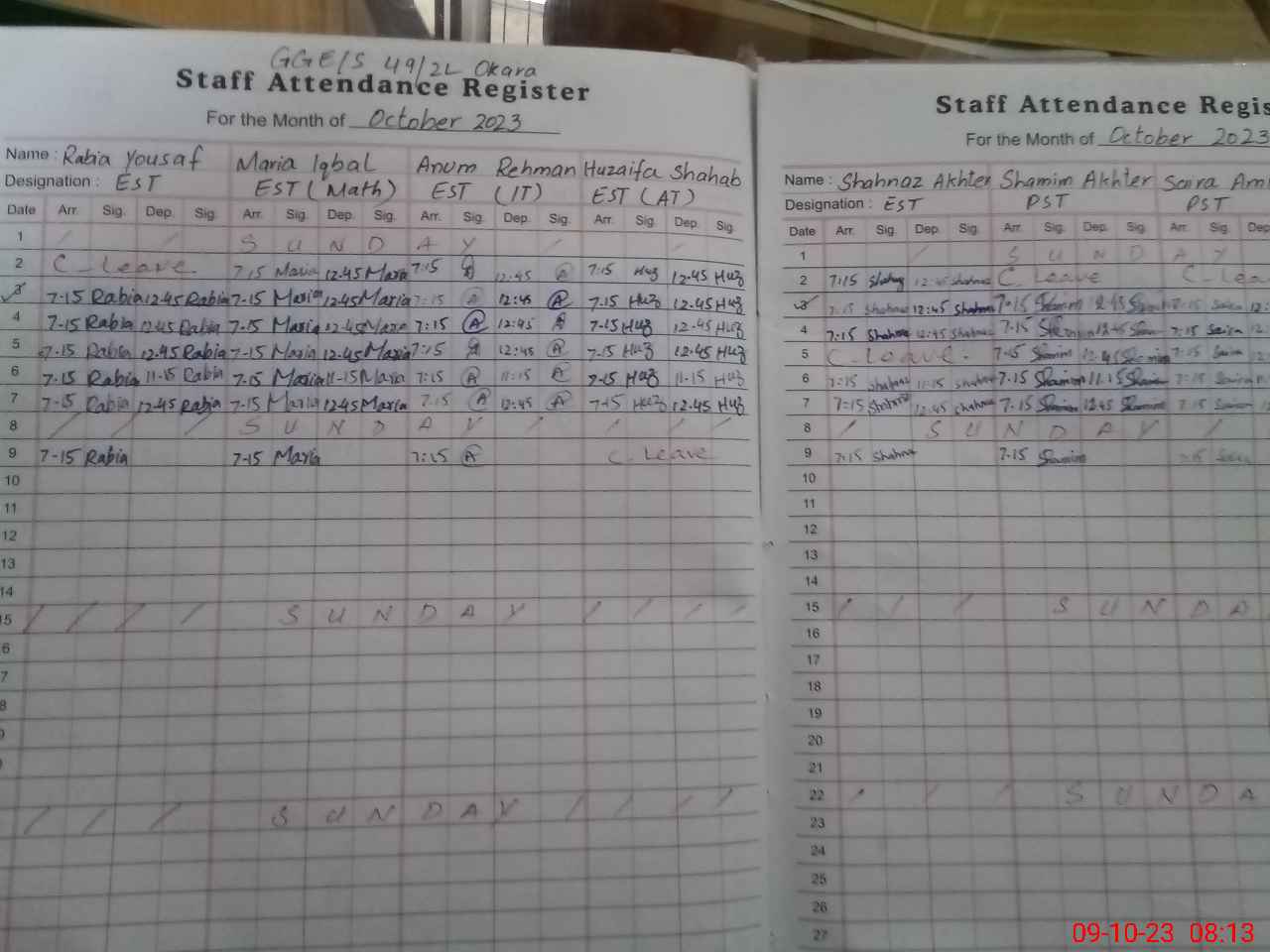 | District: OKARA | Tehsil: OKARA | Markaz: SOUTH CITY - FEMALE | Level: Middle | |