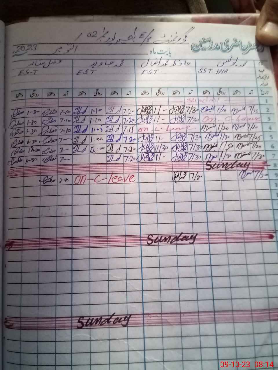 | CNIC | Full Name | Designation | R/C | Absence During Last Calender Month |