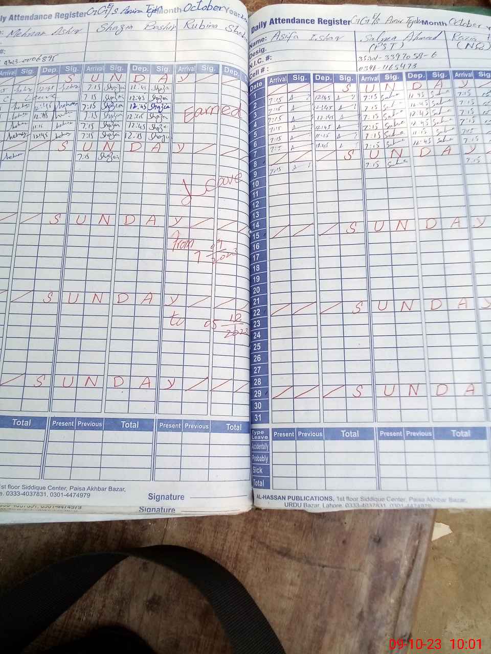 | CNIC | Full Name | Designation | R/C | Absence During Last Calender Month |
