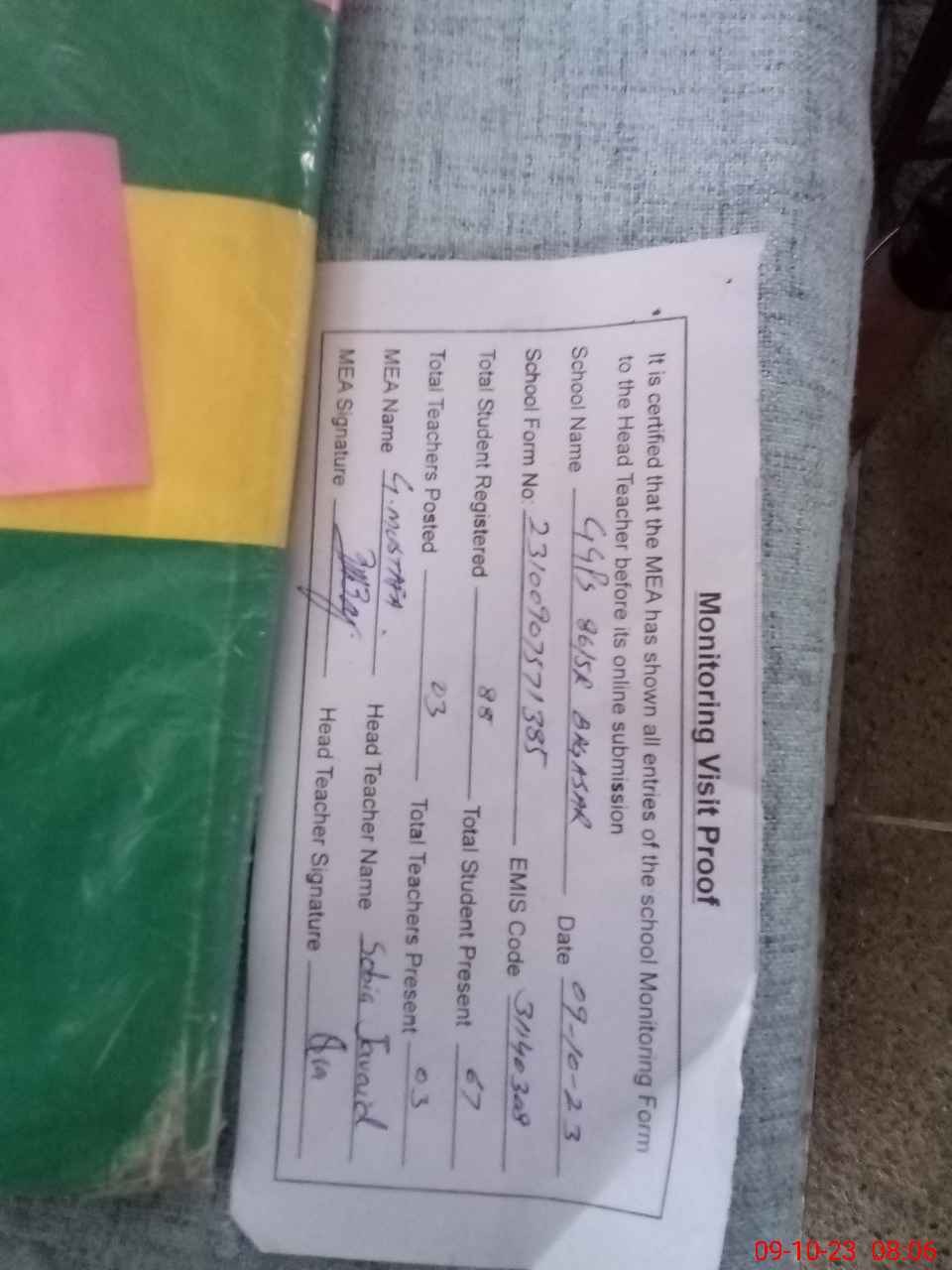| Certified that this School was Inspected by the Undersigned MEA/DMO Today and the Information Stated Above is as Per Record. | |||||