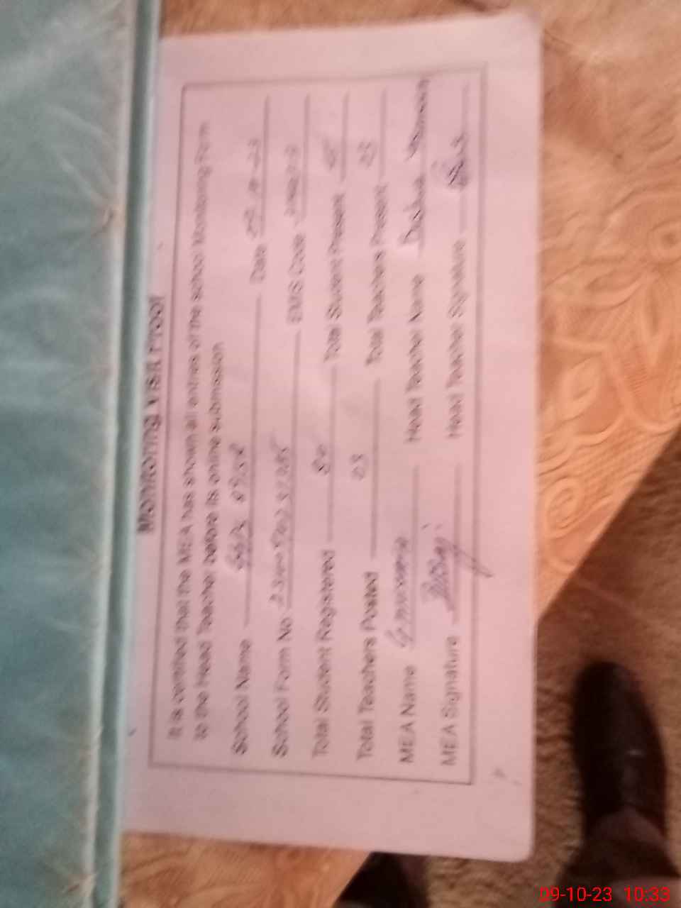 | Attendance Register | Head Teacher | MEA with School | Visit Proof |