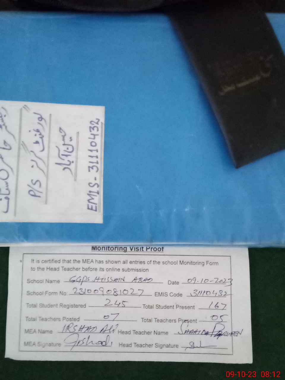 | EMIS Code: 31110432 | Name of School: GGPS HUSSAIN ABAD | |||