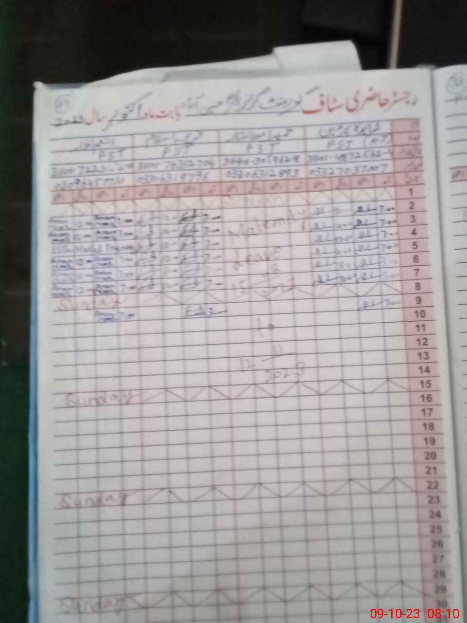 | Name: Sh**** Pa**** Designation: (School Headmaster's/Headmistress's) PST Phone/Cell Number: 03**** |