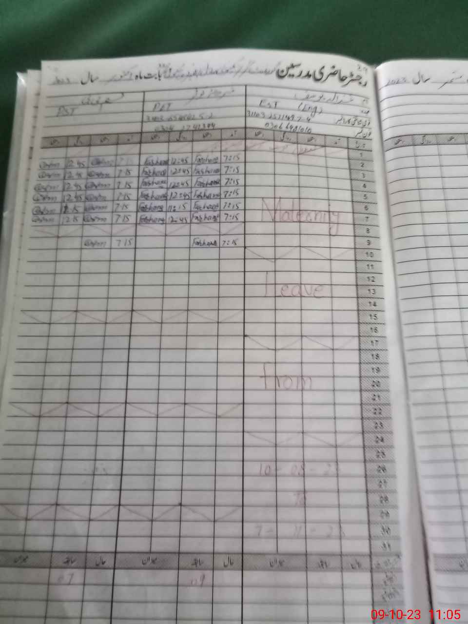 | Leave | Duty | Absent | Maternity | Medical | Ex- Pak |