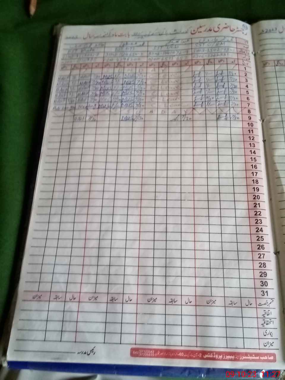 | CNIC | Full Name | Designation | R/C | Absence During Last Calender Month |