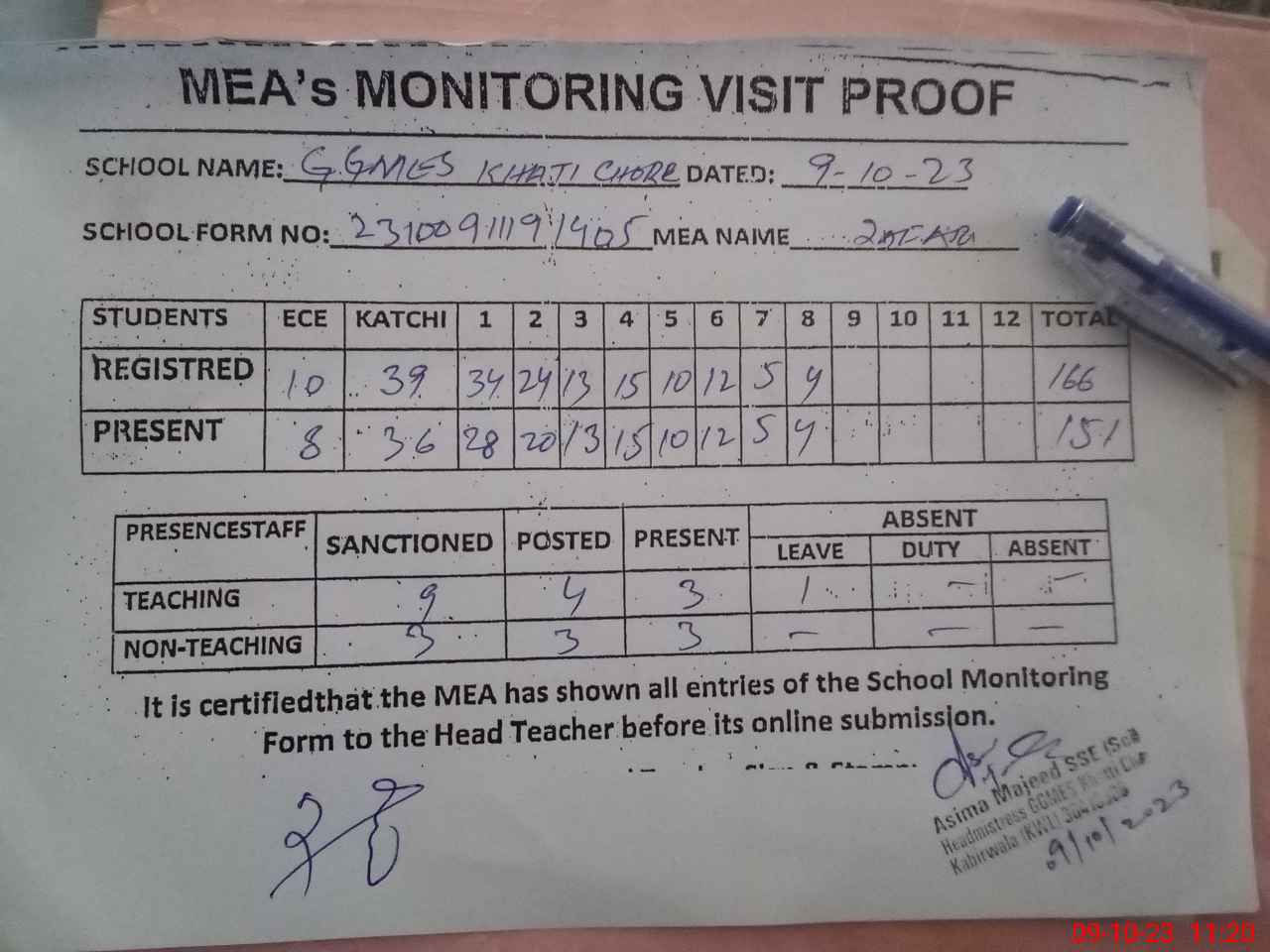| Attendance Register | Head Teacher | MEA with School | Visit Proof |