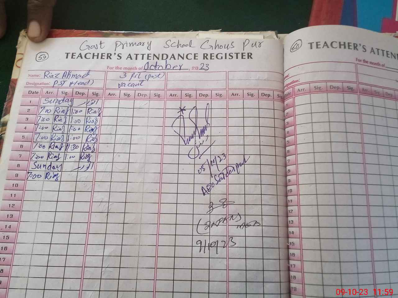 | Name: Ri**** Ah**** Designation: (School Headmaster's/Headmistress's) PST Phone/Cell Number: 03**** |