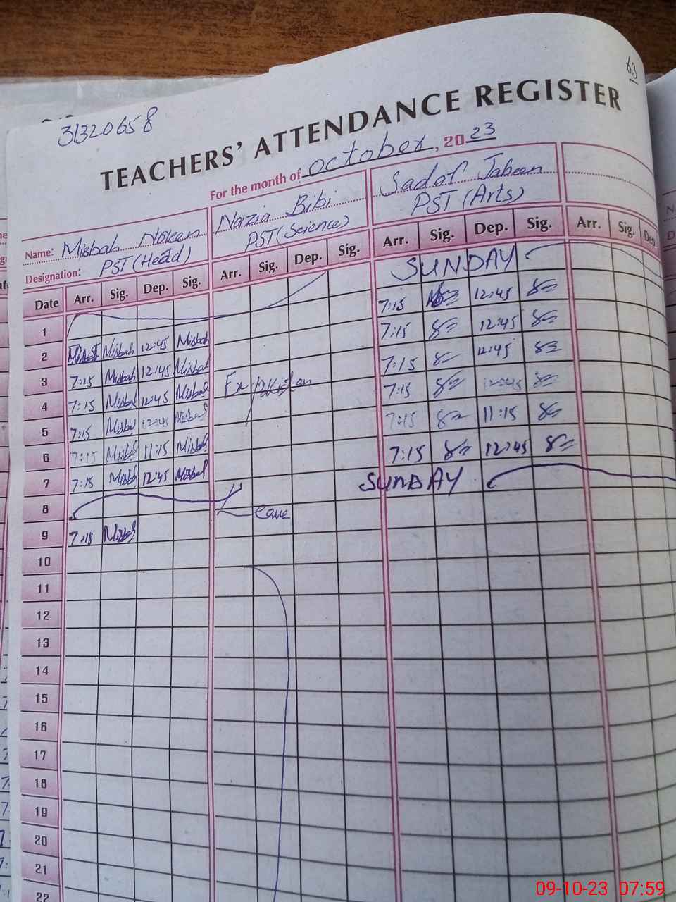 | Name: MI**** NO**** Designation: (School Headmaster's/Headmistress's) PST Phone/Cell Number: 03**** |
