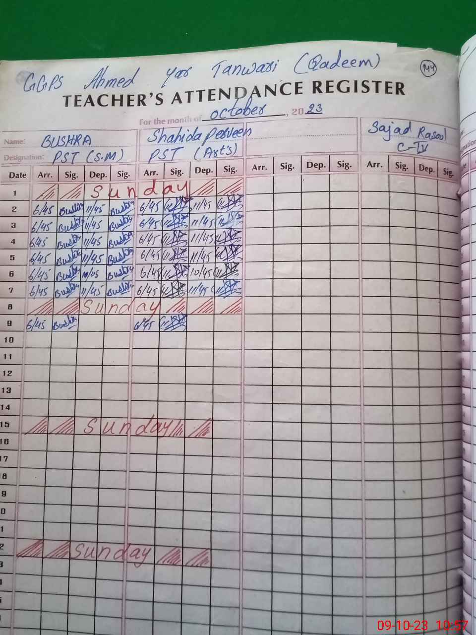 | 31**** | Sa**** Ra**** | CHOWDER | Regular | 0 | 0 | 30 | 0 | 0 | 0 | 0 | 0 | 0 | Absent (Un-Authorized) |