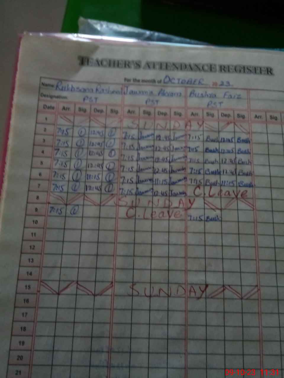 | CNIC | Full Name | Designation | R/C | Absence During Last Calender Month |