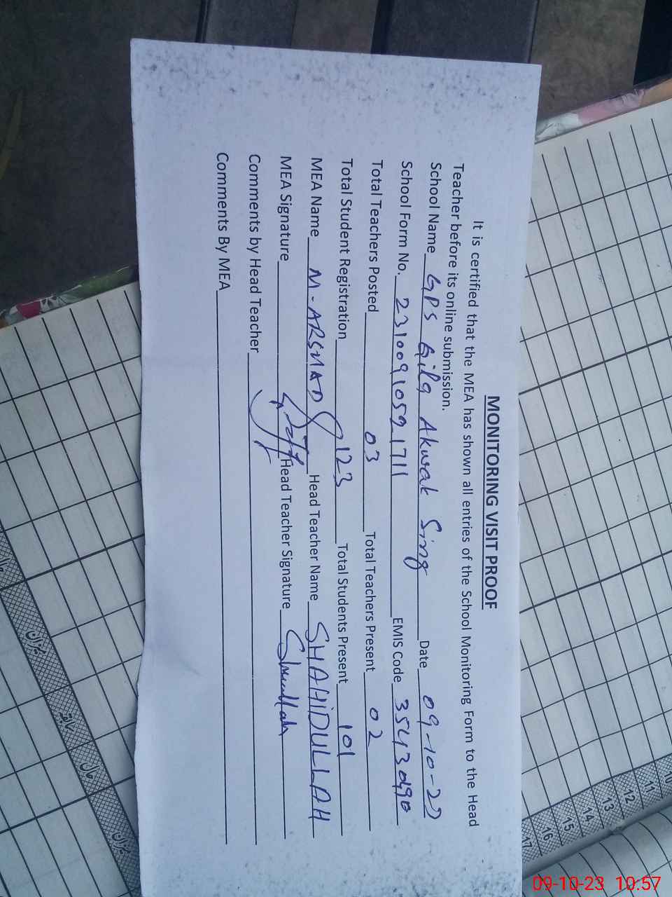 | EMIS Code: 35430490 | Name of School: GPS QILA AKWAK SINGH | |||