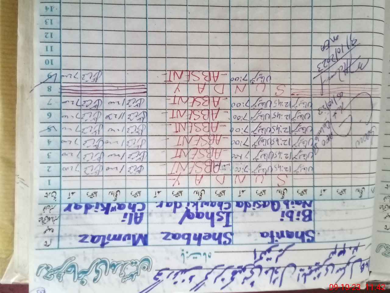 | CNIC | Full Name | Designation | R/C | Absence During Last Calender Month |