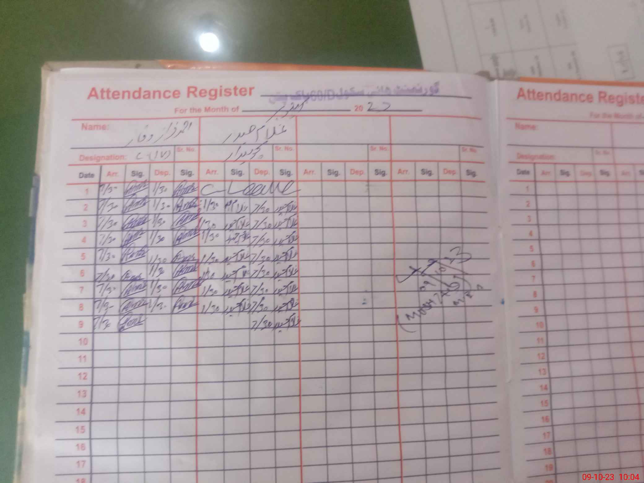| CNIC | Full Name | Designation | R/C | Absence During Last Calender Month |