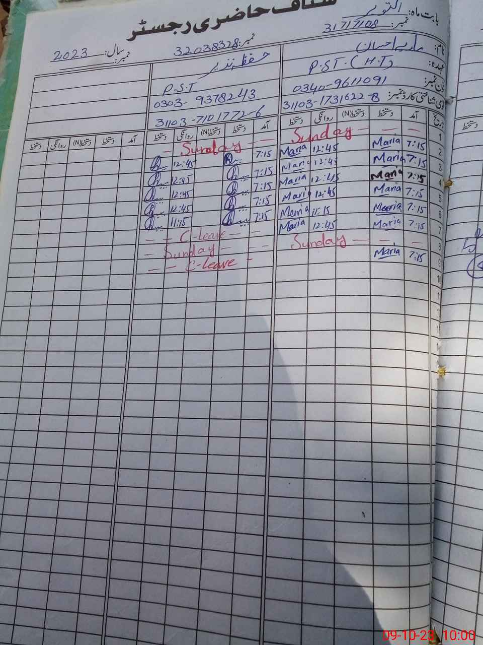 | CNIC | Full Name | Designation | R/C | Absence During Last Calender Month |