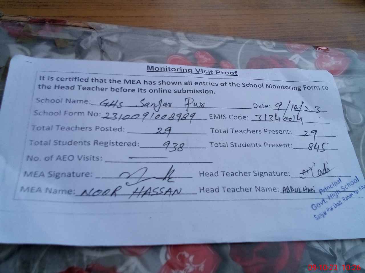 | EMIS Code: 31340014 | Name of School: GHS SANJAR PUR | |||