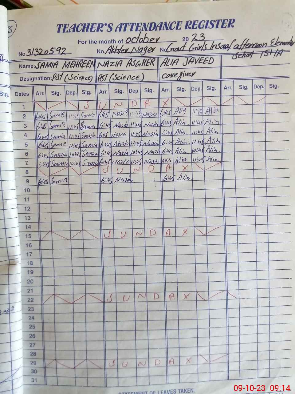 | Name: Sa**** Ma**** Designation: (School Headmaster's/Headmistress's) PST (SCI MATH) Phone/Cell Number: 03**** |